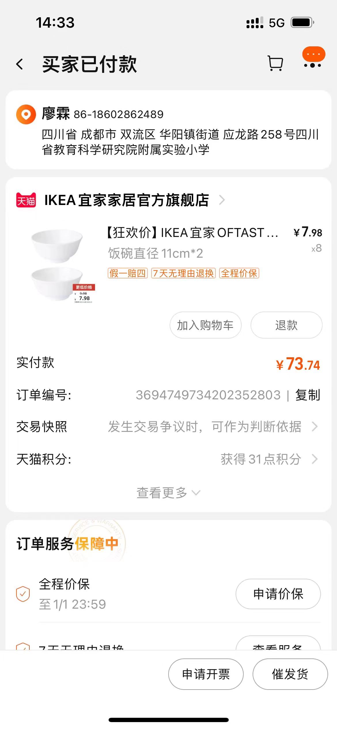 16. 2023-12-20 * 四叶草班班费支付杨楚菲妈妈购置因搬移时打烂的碗16个 -73.74 CNY