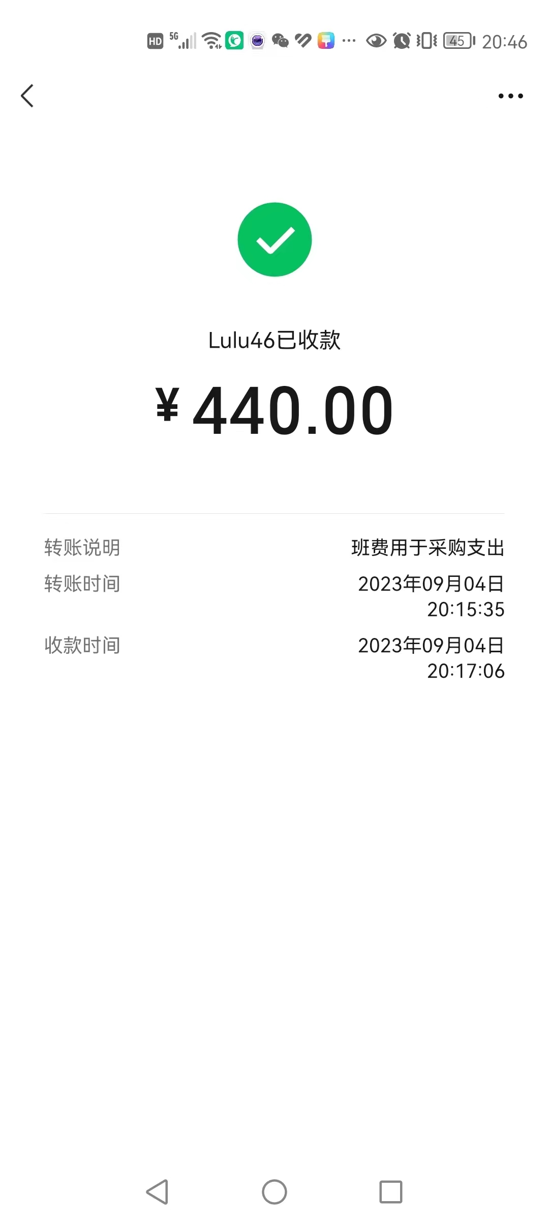 2023-08-29 * 四叶草班班费三年级收取班费每生500*47人