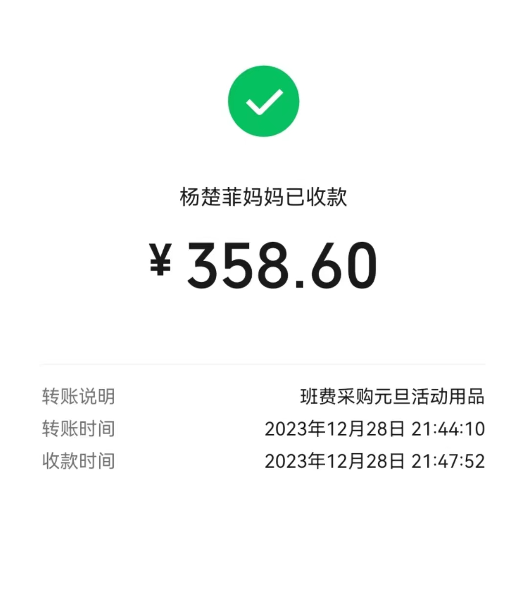 26. 2023-12-28 * 四叶草班班费支付杨楚菲妈妈购置元旦奖品以及材料